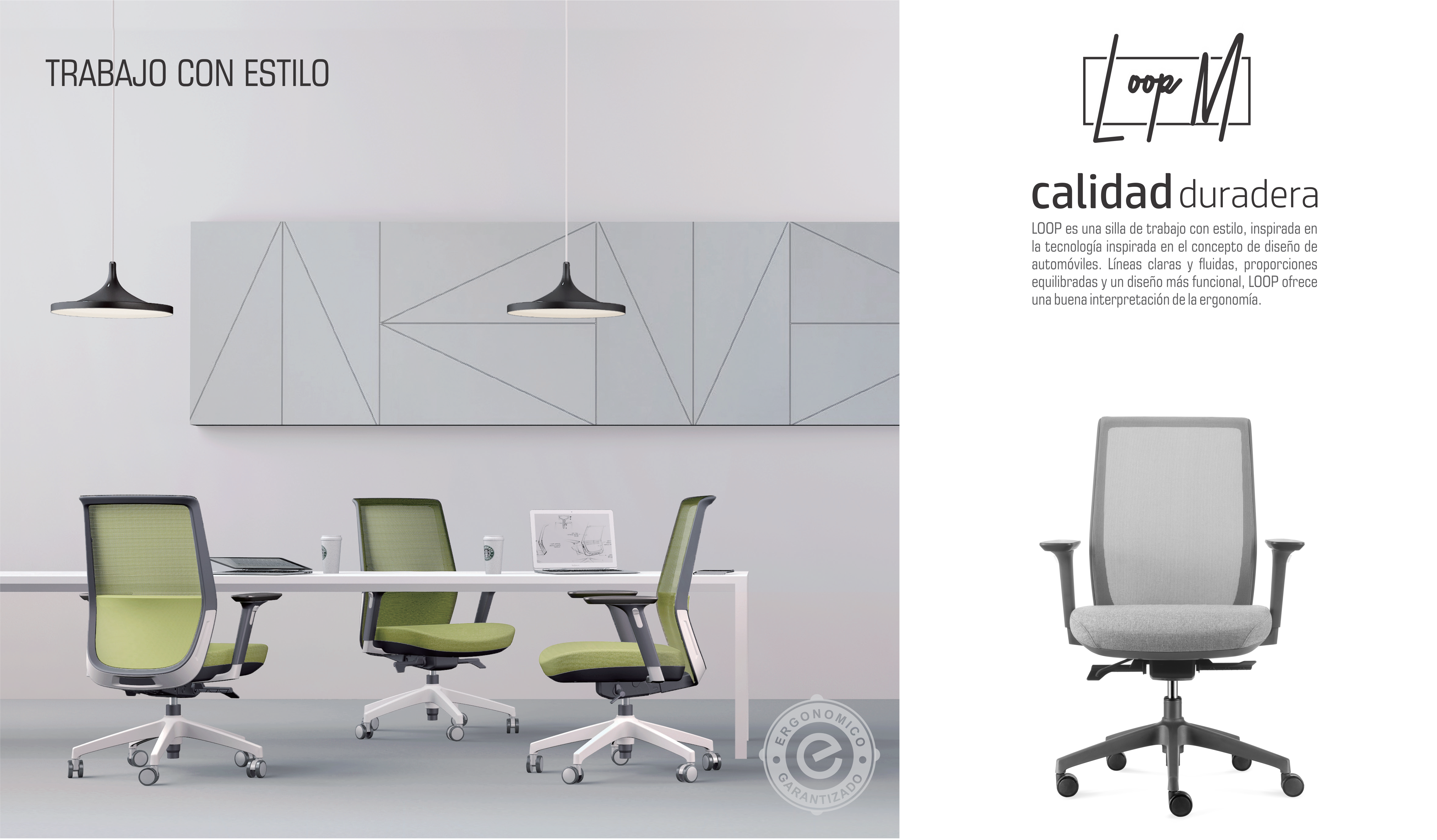 LOOP es una silla de trabajo con estilo, inspirada en la tecnología inspirada en el concepto de diseño de automóviles. Líneas claras y fluidas, proporciones equilibradas y un diseño más funcional, LOOP ofrece una buena interpretación de la ergonomía.