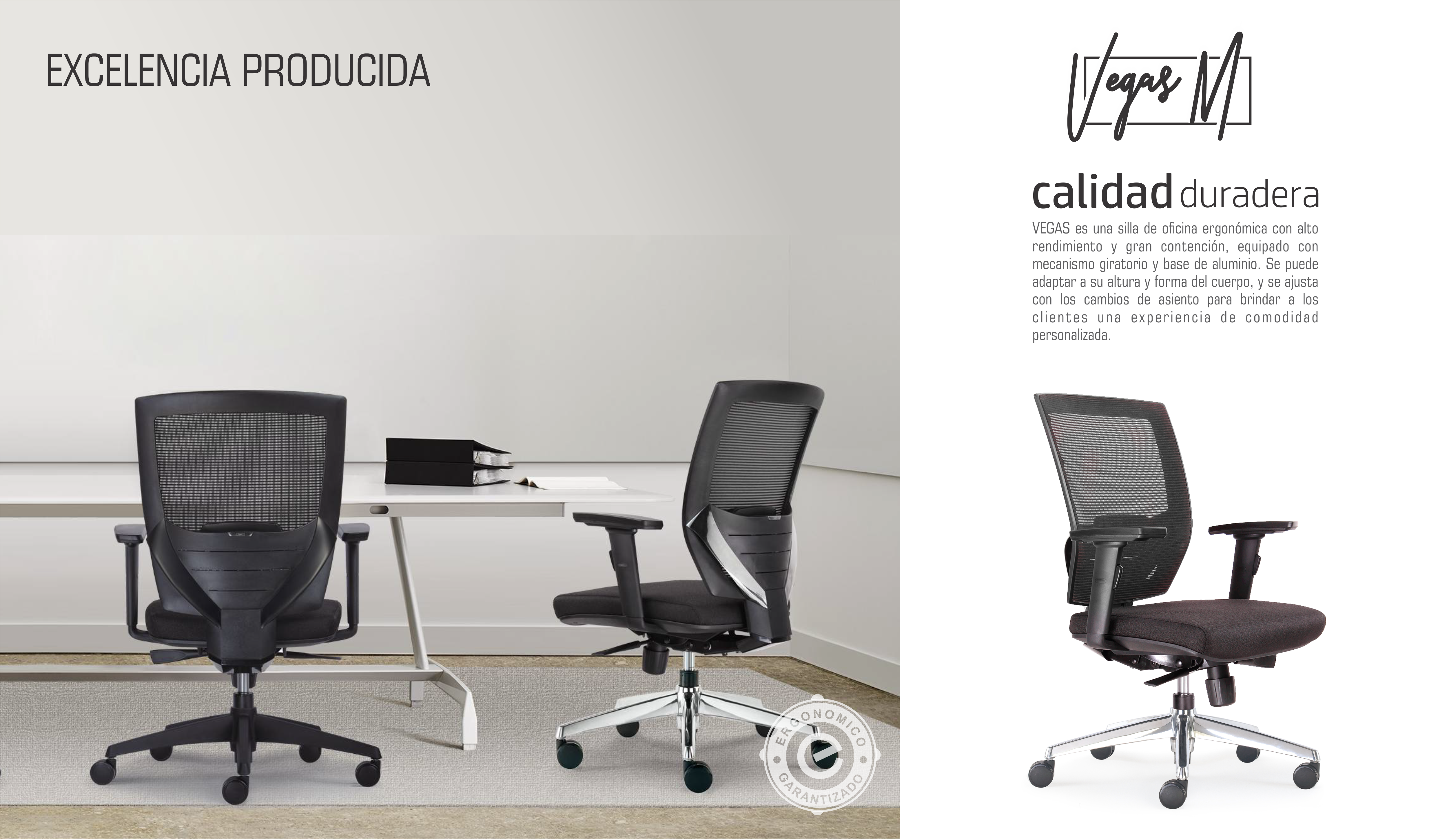 VEGAS es una silla de oficina ergonómica con alto rendimiento y gran contención, equipado con mecanismo giratorio y base de aluminio. Se puede adaptar a su altura y forma del cuerpo, y se ajusta con los cambios de asiento para brindar a los clientes una experiencia de comodidad personalizada.
