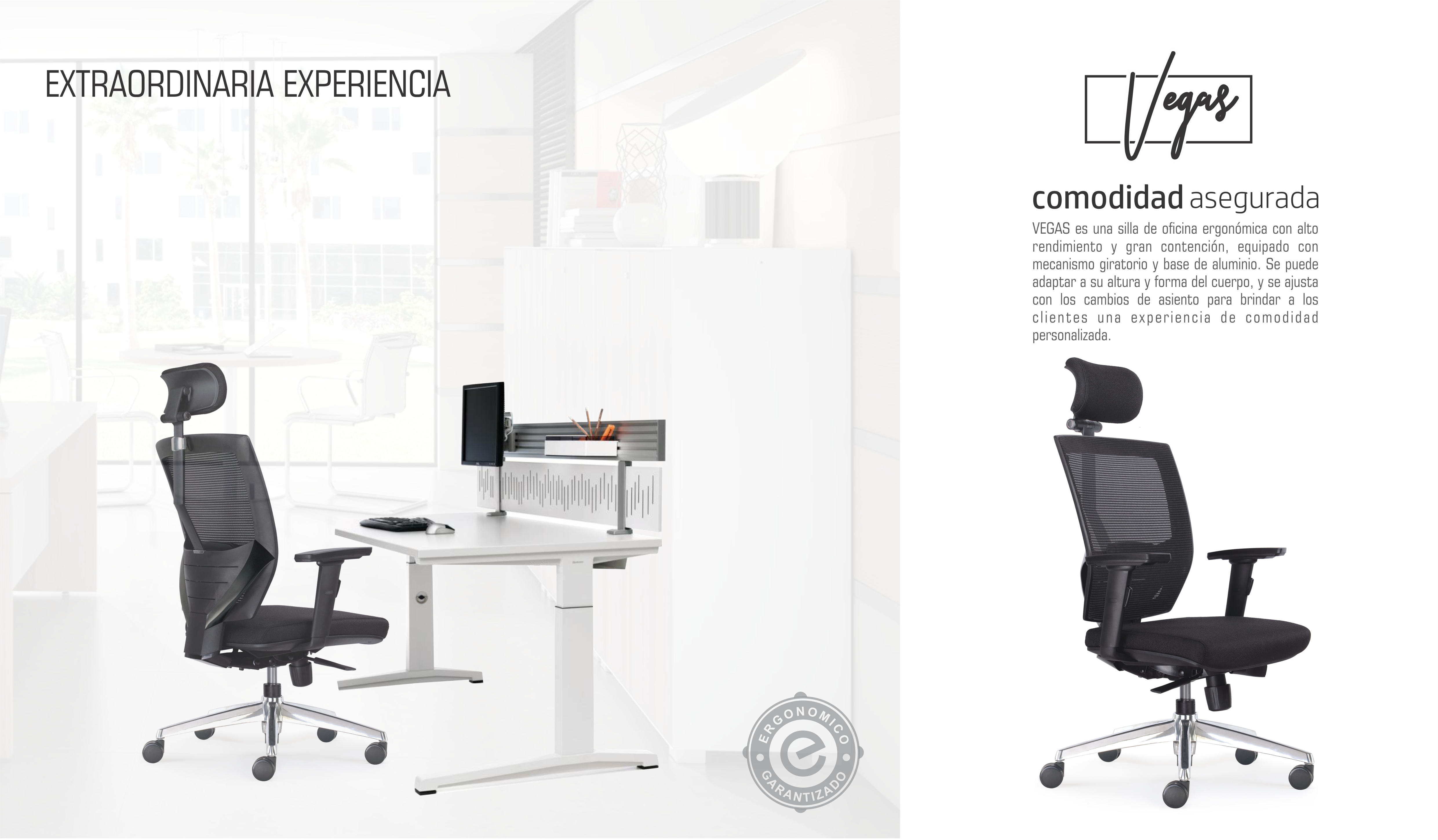 VEGAS es una silla de oficina ergonómica con alto rendimiento y gran contención, equipado con mecanismo giratorio y base de aluminio. Se puede adaptar a su altura y forma del cuerpo, y se ajusta con los cambios de asiento para brindar a los clientes una experiencia de comodidad personalizada.