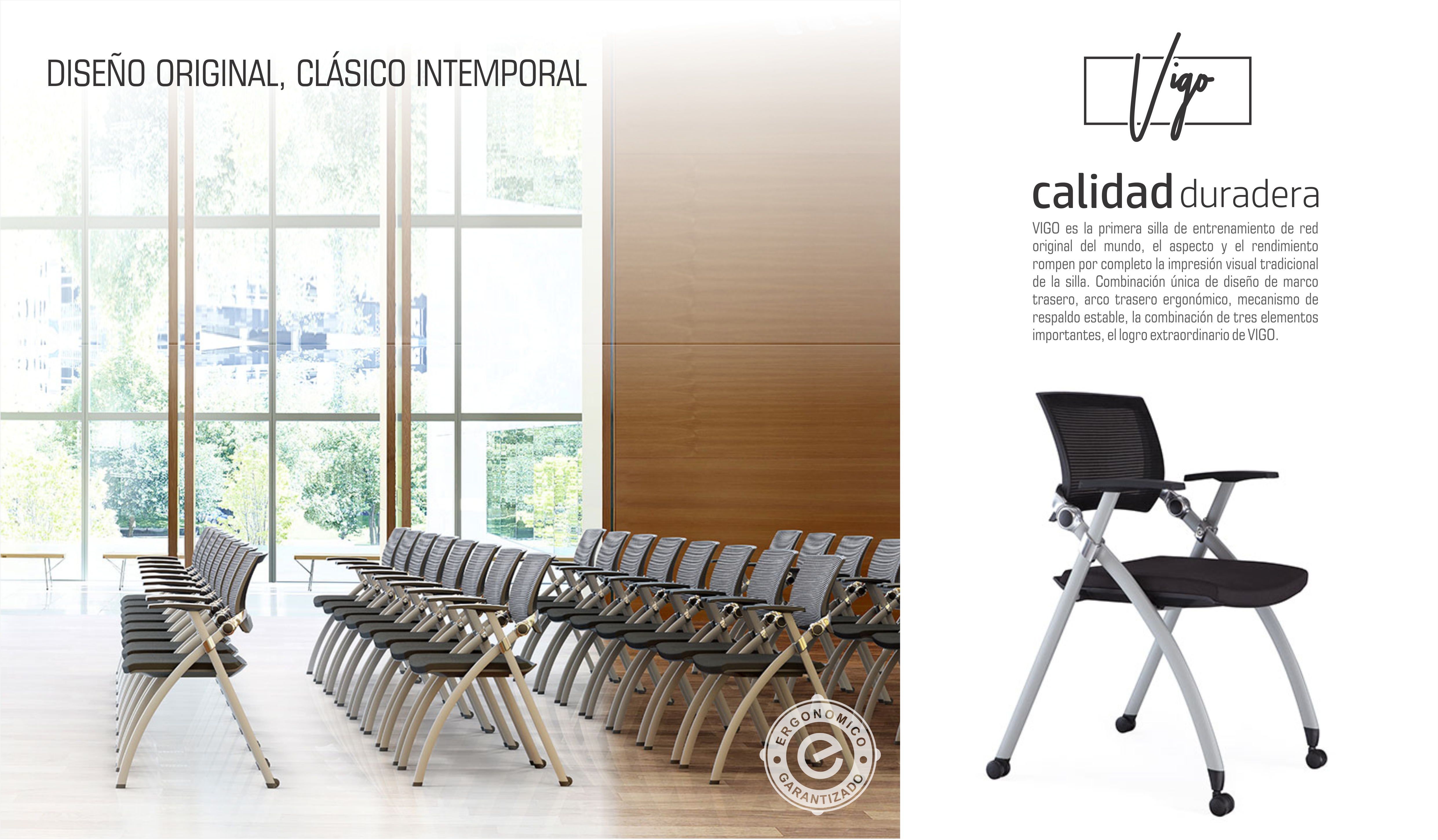 VIGO es la primera silla de entrenamiento de red original del mundo, el aspecto y el rendimiento rompen por completo la impresión visual tradicional de la silla. Combinación única de diseño de marco trasero, arco trasero ergonómico, mecanismo de respaldo estable, la combinación de tres elementos importantes, el logro extraordinario de VIGO.